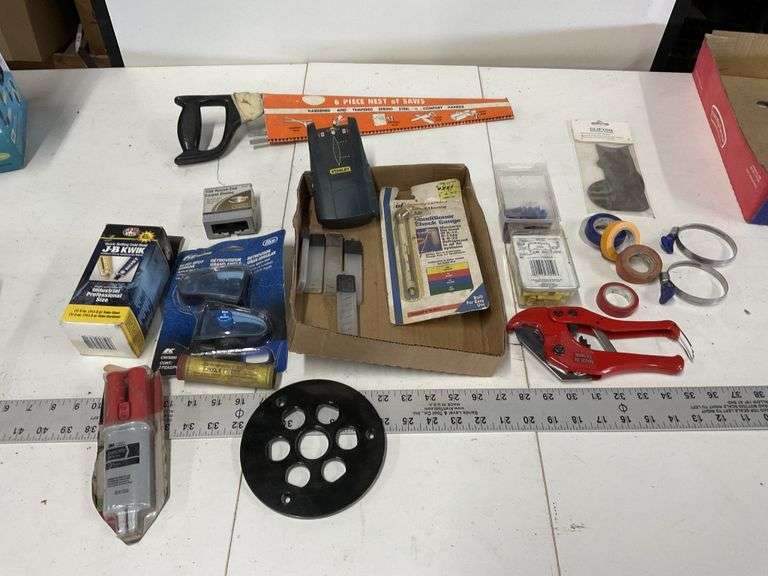 LOT 2461 - J-B Weld, carpet razor blades, PVC cutter marking