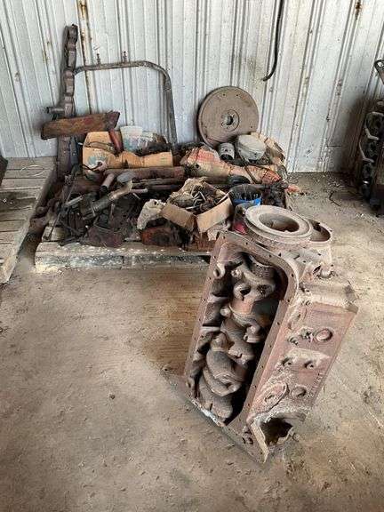 LOT 2033 - Ford engine block, pallet of misc car parts