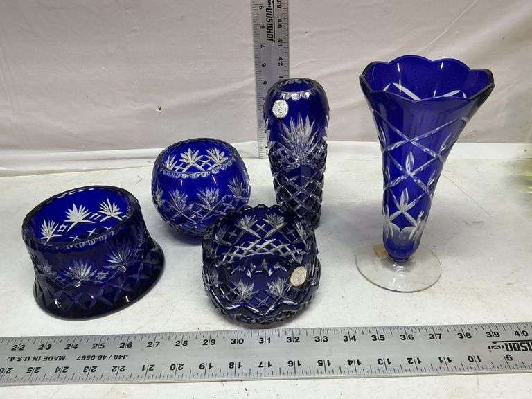 LOT 381 - Blue cut crystal bowls/vases made in Poland