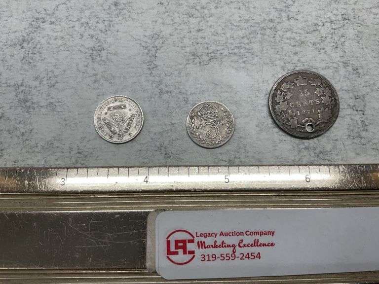 1918 silver 3 pence and 1871 Canada silver 25 cents