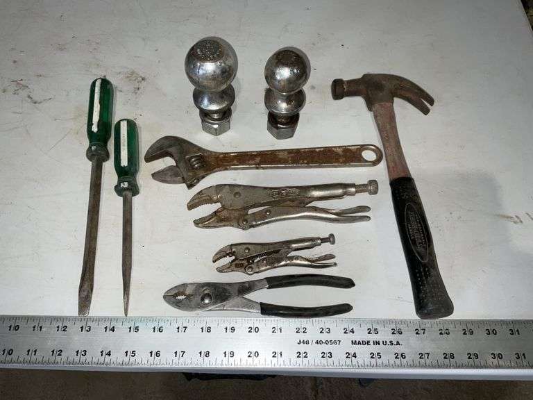 LOT 178b - Vise grips , hitch balls etc.