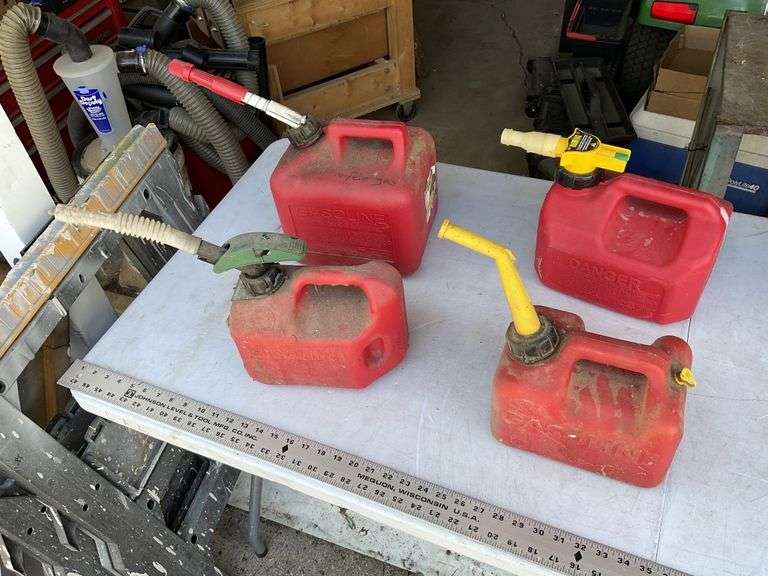 LOT 533 - 4- plastic fuel cans, 1- with some fuel