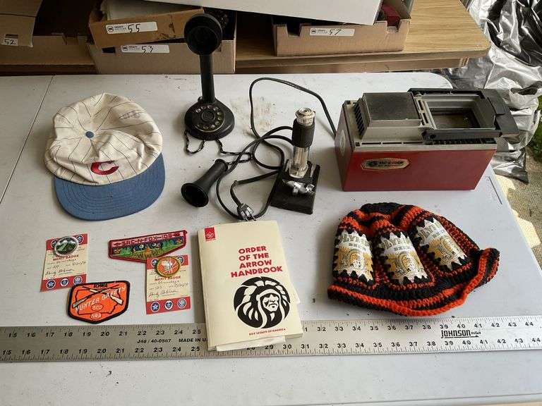 LOT 79 - Olympia beer hat, plastic telephone, etc.