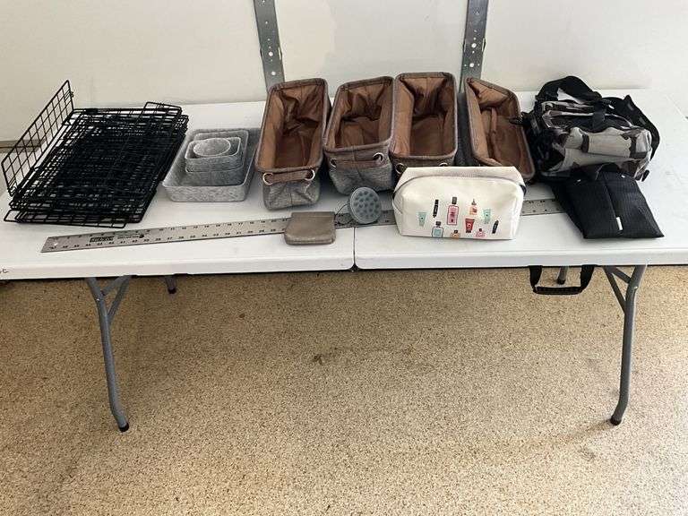 LOT 38 - Four metal baskets, toiletry bag, small backpack,