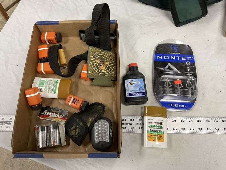 LOT 625 - Montec broad heads, two cycle engine oil, etc.