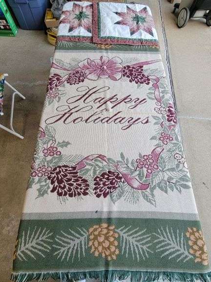 LOT 405 - "Happy Holidays" Blanket & Pair Of Quilted Star