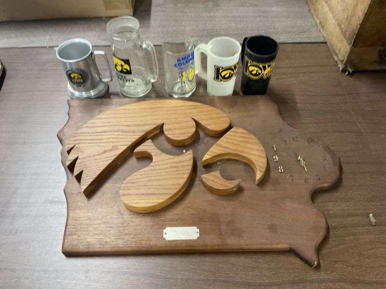 LOT 460 - Iowa Hawkeyes Rose Bowl 1986 clock and beer mugs.
