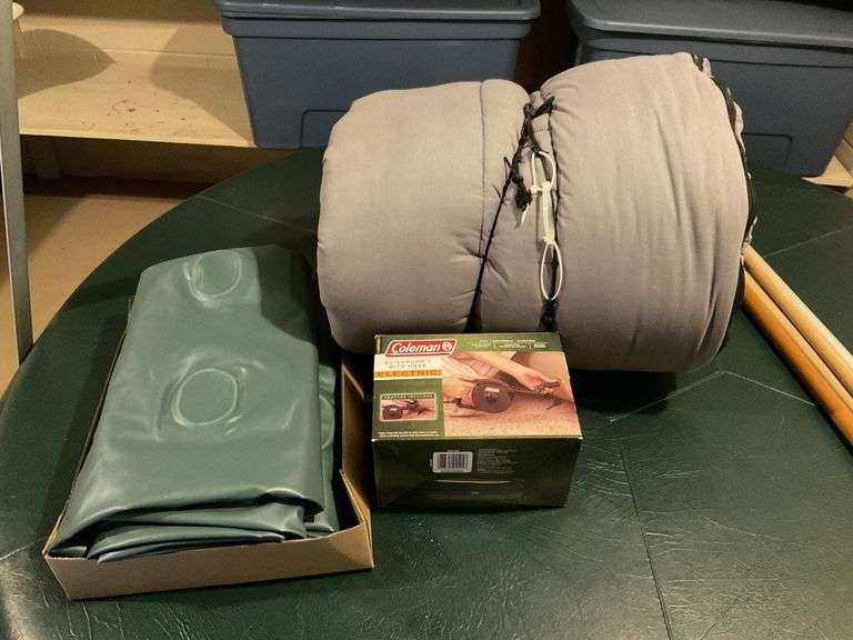 LOT 643 - Inflatable mattress with pump and sleeping bag