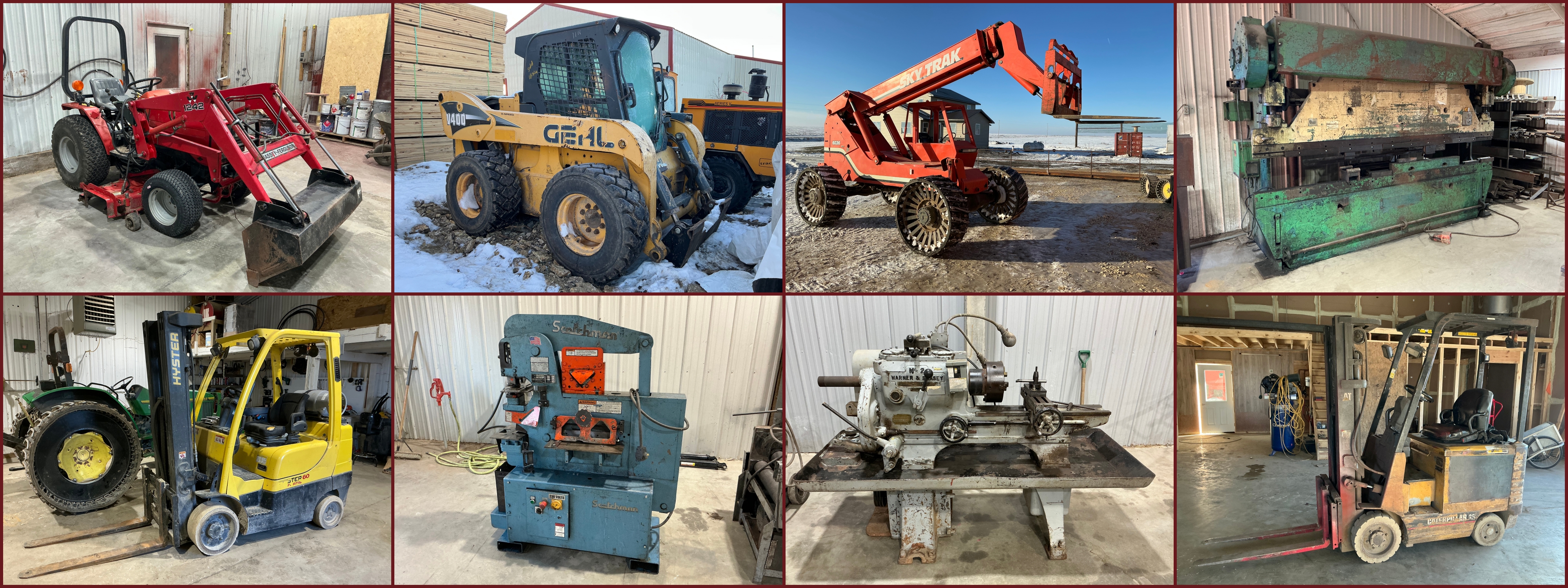 This auction features an exceptional lineup of welding equipment, machinery, forklifts, telehandlers, steel inventory, farm equipment, and shop tools. From tractors, skidloaders, and cranes to presses, lathes, plasma cutters, and large quantities of steel — this is a must-attend auction for fabricators, farmers, contractors, and equipment buyers alike.